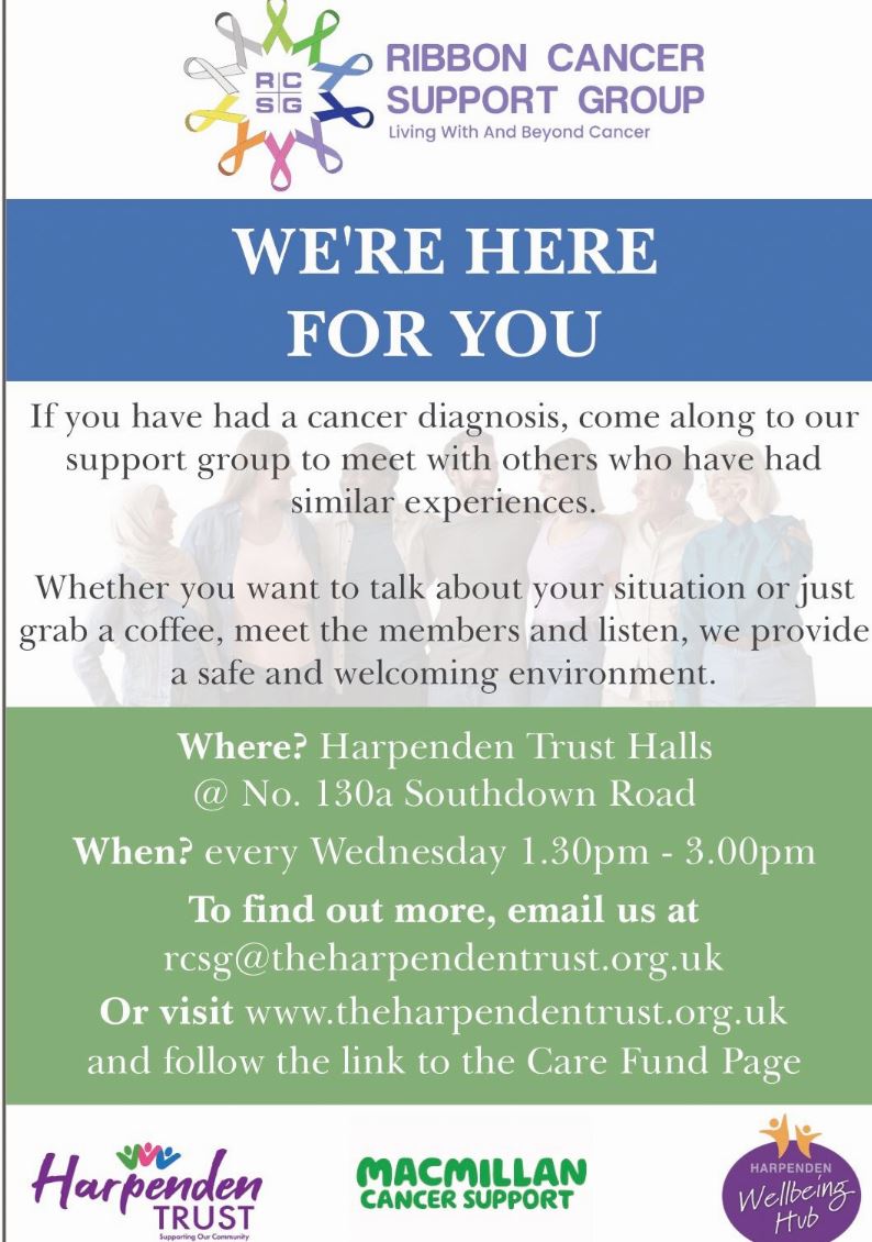 WE ARE DELIGHTED to announce the launch of a new, local support group for people who have had a cancer diagnosis. Working with the Harpenden Trust, and backed by Macmillan, the group will run every Wednesday afternoon (starting 7 June 2023) at the Trust Halls in Southdown and will provide a safe space where people can meet and connect with other people who share similar experiences. Whether you want to come and tell your story, have a friendly chat or just listen, we are here to help support you.